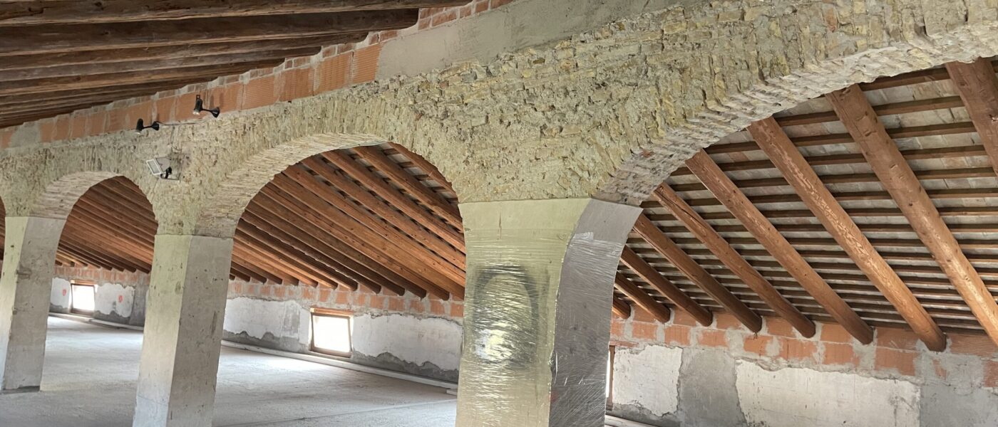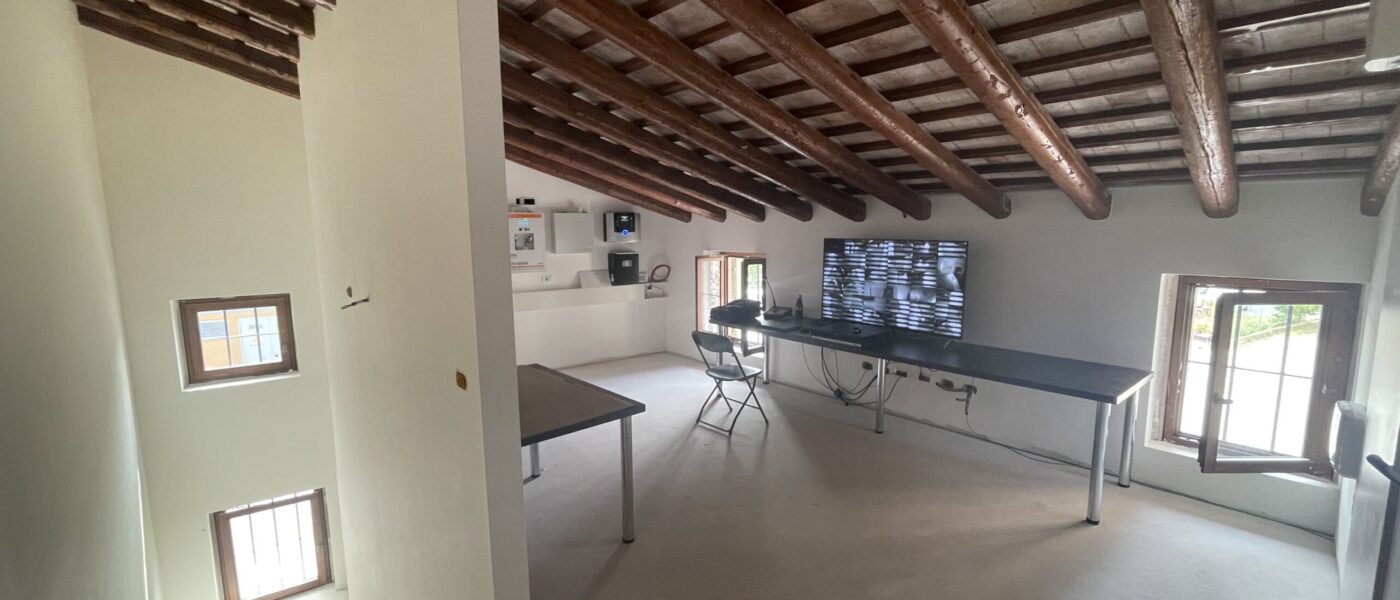 The restoration project involves a functional reorganization of the Exedra, the East Tower, and the annexed building, with a clear definition of intended uses and internal pathways, aimed at enhancing the museum layout. On the ground floor, the Exedra will host nine exhibition rooms. The main access remains at the base of the Tower, now directly connected to the southern cell of the Exedra (secondary atrium) via a new opening and a ramp addressing a 15 cm height difference. The northern room will serve as an artwork storage space, while the annexed building will house staff changing rooms, services, and a public bathroom at the southern end. The central and southern stairwells will accommodate air treatment systems. On the first floor of the Exedra, seven exhibition rooms are planned, with a layout consistent with the ground floor. The Tower will serve as a vertical connection to the second floor, where the exhibition begins. Public restrooms will be located at the northern and southern ends, with systems near the stairwells. The first floor of the annexed building will host a Control Room with a private bathroom. The second floor will be partially exhibition space and partially dedicated to ancillary functions (refreshment point, audio guides, lockers), using lightweight, removable elements to respect the open spatiality and low-arched arcades. Services and technical rooms will be concentrated at the northern and southern ends. A new Tower–Exedra connection is planned through an opening in the southern room, formerly a silkworm hatchery, with a three-step connection. The exhibition path spans three levels: entry from the Tower, visit to the second floor (south to north), descent to the first floor (north to south), and ground floor (south to north), concluding at the northern end of the Exedra. From there, visitors return to the second floor (north to south) to access services before exiting via the southern staircase. Only the end staircases are for public use; the central one is reserved as an escape route. The Tower is fully integrated into the museum function as a vertical connection axis. Before opening the new second-floor passage, a stratigraphic survey is planned, although prior investigations found only decorative traces of no prohibitive value.